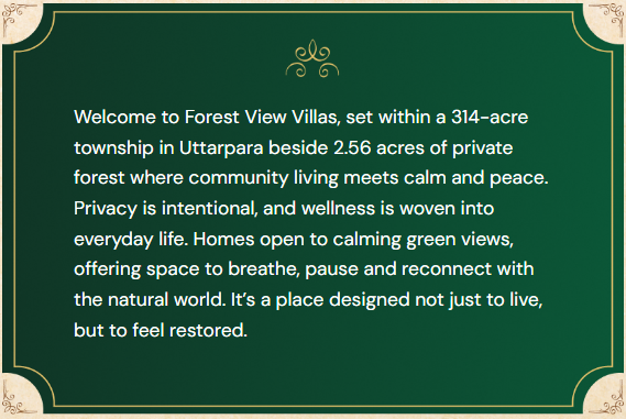 Copyrights © 2025 Shriram Forest View Villas, Konnagar, Hooghly. All rights reserved.
